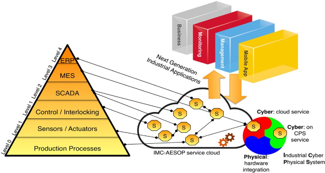 IMC-AESOP兼顾ISA 95中金字塔架构中的各种元素,同时将其与扁平化的现代系统趋势相辅相成,通过工程实践增强两者之间的可集成性。IMC-AESOP将ISA 95规范中的功能拆解为可以在边缘侧或者云端提供的服务模块。最终用户可以轻松的将特定场景所需的功能和服务进行搭配,免除了ISA 95各个层级中系统集成的困扰。
