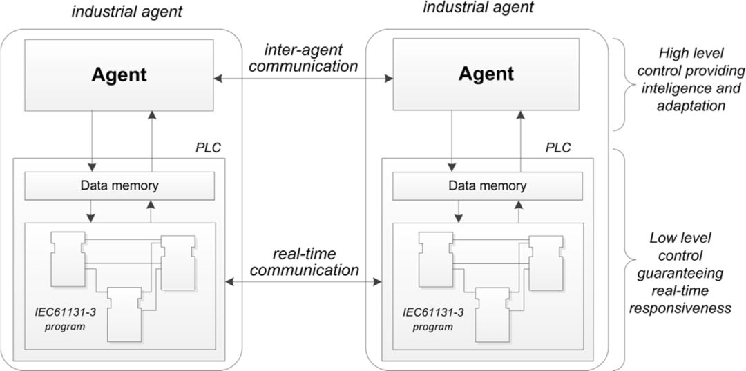 由于MAS既需要确保智能体之间的通讯,还需要确保物理设备之间的实时互联,因此IEC 61131-3和IEC 61499标准是必不可少的底层支持。其中,IEC 61131-3是IEC 61131标准的第3部分,用于规范可编程逻辑控制器PLC、过程控制系统DCS、工控机IPC、数控机床CNC和SCADA编程系统的标准;IEC 61499是用于分布式工业过程测量与控制系统功能块的标准。