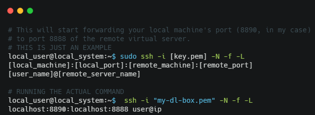 另一种选择则是使用 SSH 隧道,即在本地实例上启用端口转发,从本地浏览器直接访问云端的 Notebook,这对 AWS 实例尤其有用。