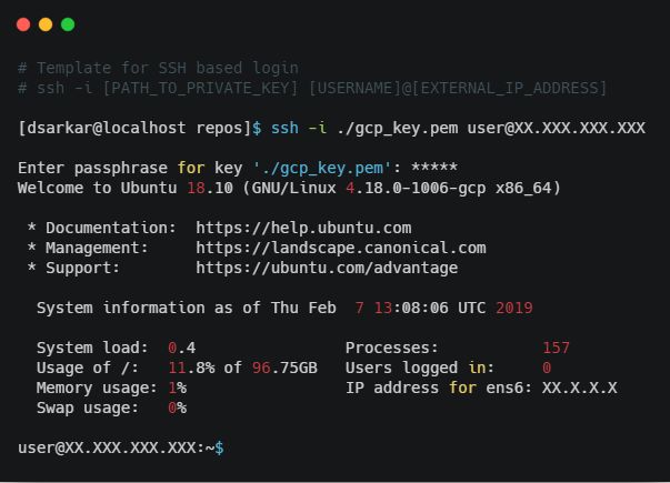一旦创建了实例,你就可以通过云供应商的平台启动它。我们通常使用 AWS 中的 EC2 用户界面或 GCP 中的 VM 实例页面。启动实例后我们通常需要一个私钥使 SSH 能够从本地终端登录到服务器。AWS 允许我们在创建 VM 的最后一步中设置自己的密钥,并提供一个可下载的密钥。GCP 则允许我们在 GCP 实例页面直接使用 SSH 登录到系统。然后,如果没有密钥的话,可以按照指南创建自己的 SSH 密钥。