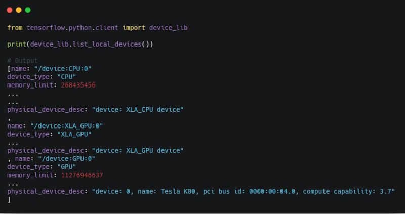 最后一步为验证过程,确保我们的深度学习框架正在利用 GPU(通常按小时收费)。以下代码可以帮助我们验证。