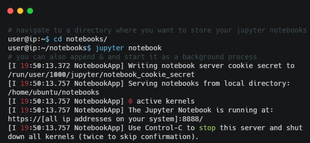 没有人想直接使用服务器的终端编写代码,使用 Jupyter Notebook 进行交互式开发显然是一个更好的选择。为此,我们需要通过本地系统访问云服务器上的 Notebook。当然,我们首先要在远程实例上启动 Jupyter Notebook 服务器。