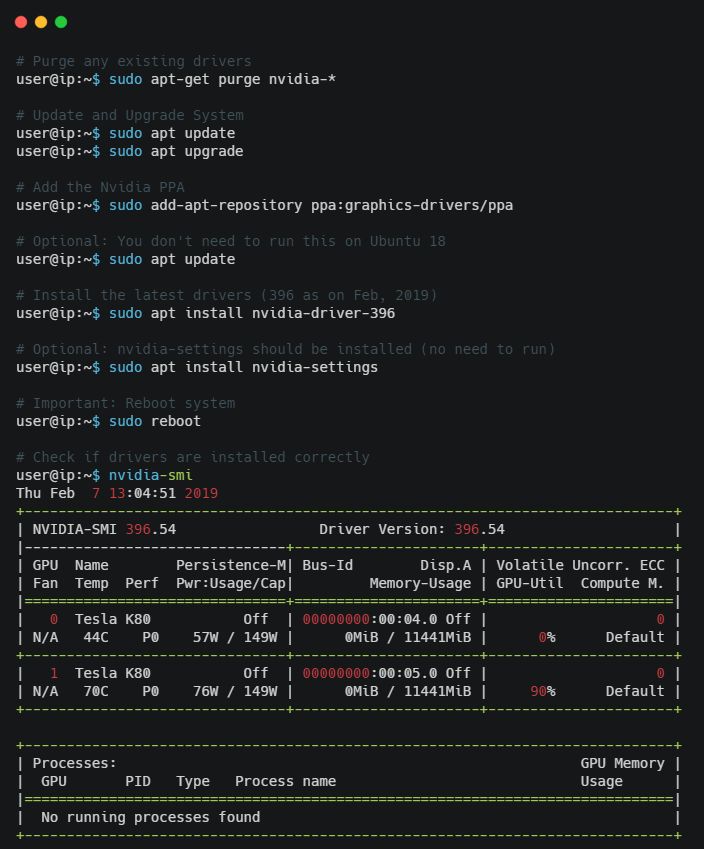 恭喜!现在你已经成功登录到深度学习服务器中。在这里我们假设你使用了 Linux 服务器来进行深度学习的配置,我们使用的是 Ubuntu 18.10,当然你可以按照自己的喜好选择其他 Linux 发行版!