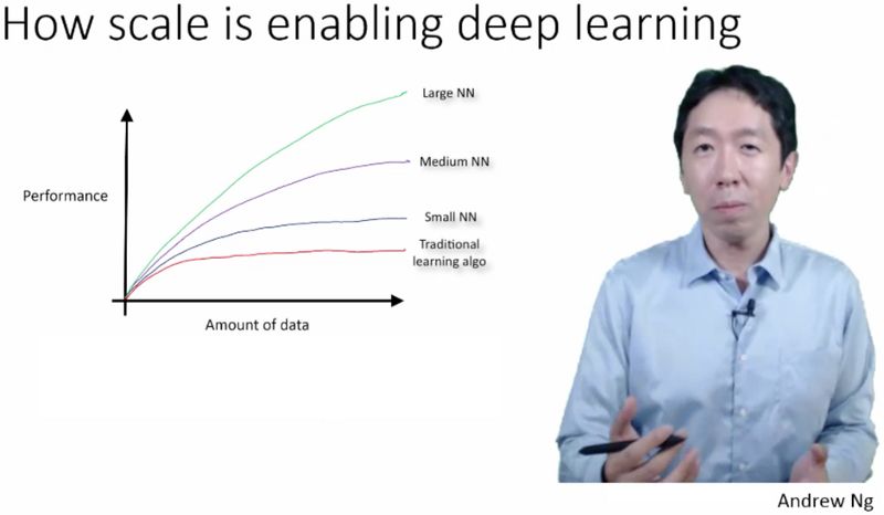 深度学习已经开始在这些领域崭露头角,我们也看到它逐步被应用到一些现实世界中的规模化问题上。著名的人工智能传奇人物吴恩达在几年前也提到过相同的问题!