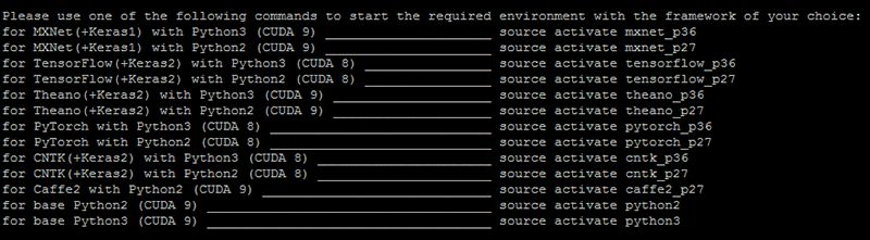 你可以使用一个 Conda AMI,它为每个深度学习框架提都提供了单独的虚拟环境;你也可以使用一个 Base AMI,用于自定义配置和构建。