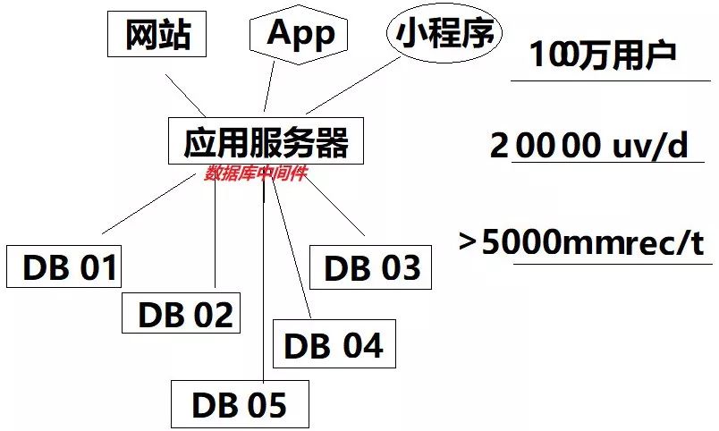 将一个大库拆成若干小库,保持数据库对象都一致,这样每个小库分摊掉一部分流量,应用终将回归第一种简单架构上来,将用户服务好。