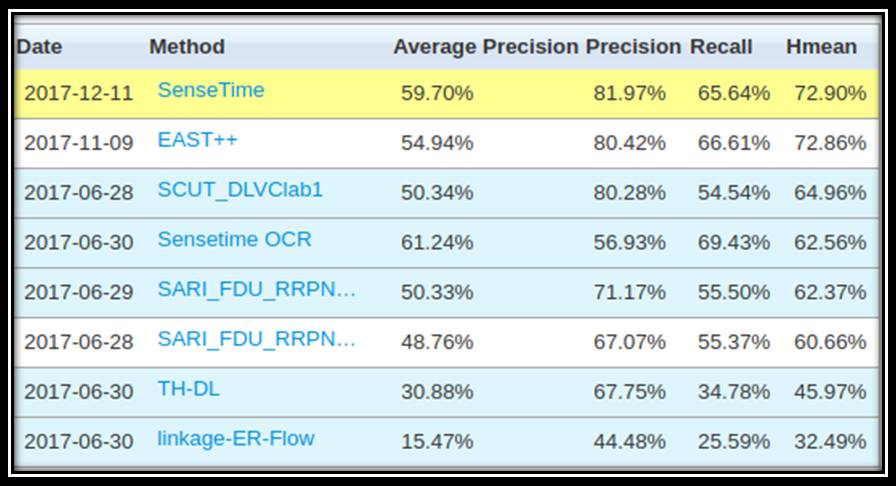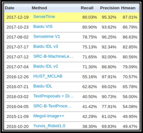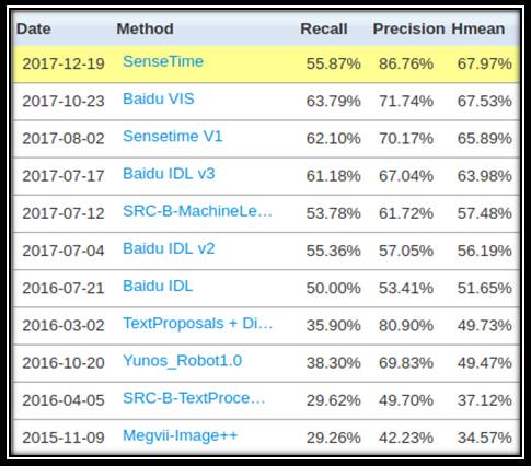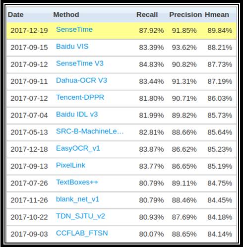 近日,在OCR识别领域最具权威的ICDAR数据集挑战中,商汤团队频传捷报,取得三项任务榜单第一。其中,最有影响力和难度最大的ICDAR2015数据集中,文字检测和端到端识别两项任务排名世界第一,超过了百度、三星等团队。在ICDAR2013数据集文字检测任务中,又斩获世界第一,超过腾讯、旷视、百度、微软、三星等国内外强队。