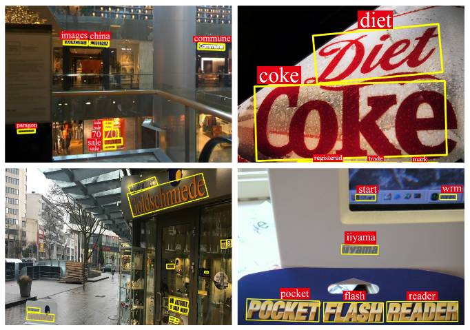 ICDAR数据集每届呈现的特点不同,难度和复杂性也逐渐提高。从ICDAR 2013起,主要针对在自然场景下的水平文字检测,随后在ICDAR2015和ICDAR2017中,数据集的难度不断增加,文字检测不仅要在自然场景下完成,字体变化如模糊、倾斜、背景干扰等也增加复杂性和识别难度,带来更大挑战。ICDAR2017又增加了多国语言的文字检测,难度进一步加深。