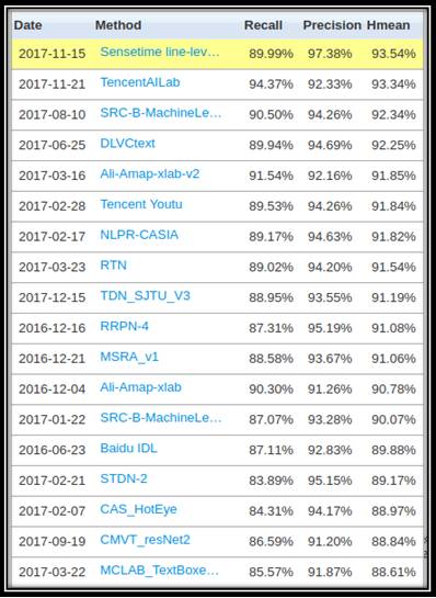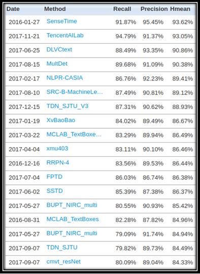 ICDAR2017 MLT数据集上文字检测任务排名第一