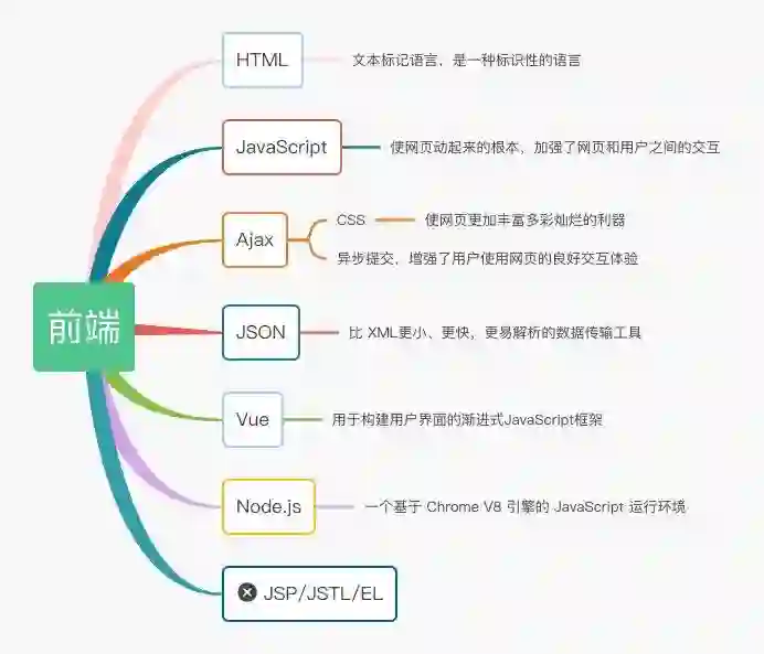 HTML、CSS、JS、Ajax 我觉得是必须掌握的点,看着简单其实深究或者去操作的话还是有很多东西的,其他作为扩展有兴趣可以了解,反正入门简单,只是精通很难很难。