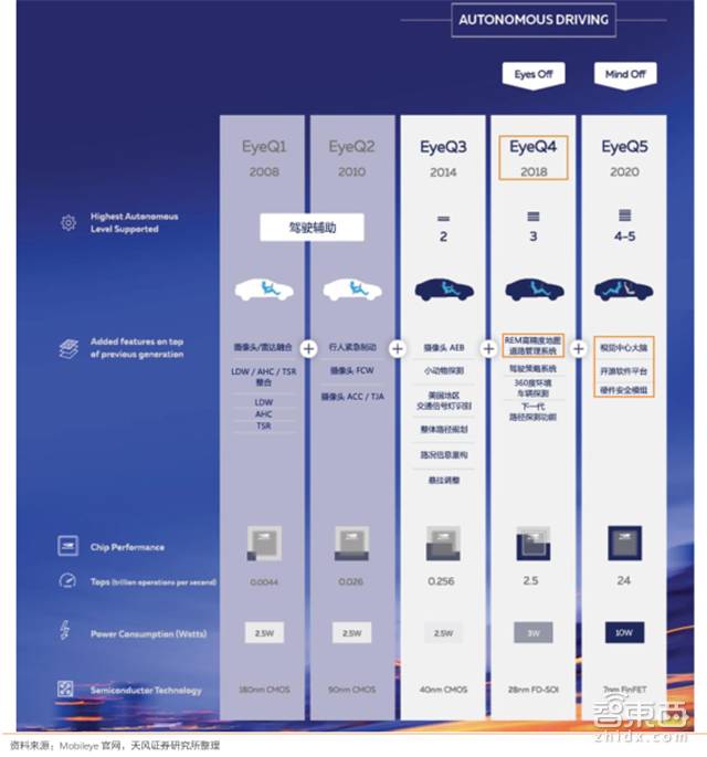 ▲EyeQ系列芯片参数介绍