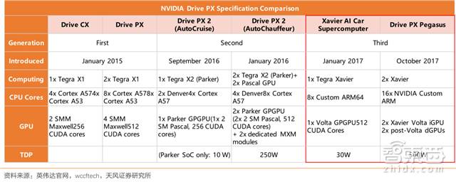 ▲英伟达三代自动驾驶平台性能比较