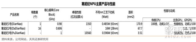 ▲寒武纪 DianNao 系列主要产品与性能