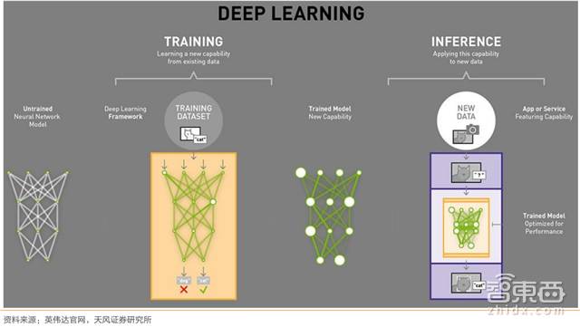 ▲深度学习在神经网络模型的应用中主要分为上游训练端和下游推理端