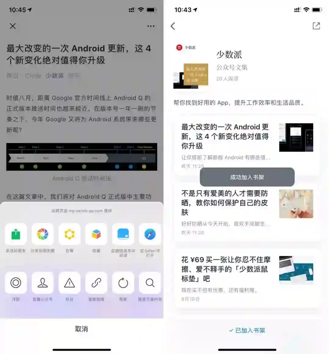 最近发布的「快知」是一个集大成者的订阅神器。主打「聚合阅读」的快知,从 B 站 UP 主更新视频到微博大 V 发布微博,都可以通过机器人来提醒我们其内容的更新。微信公众号的文章更新也不例外。快知 - 微信公众号机器人我们可以在「快知」App 里面的「机器人」中搜索「微信公众号更新了文章」机器人,并通过此机器人「创建主题」来跟踪我们想要订阅的微信公众号。这样,我们就可以让「快知」第一时间通过推送通知来提醒我们微信公众号的文章更新。(当然,「快知」本身有少数派主站的更新追踪,不必单独新建少数派公众号追踪主题。)iOS 用户现在可以直接在 App Store 免费下载快知,对于一些已有的主题,我们可以直接订阅跟踪。创建全新的机器人跟踪订阅主题需要填写邀请码。