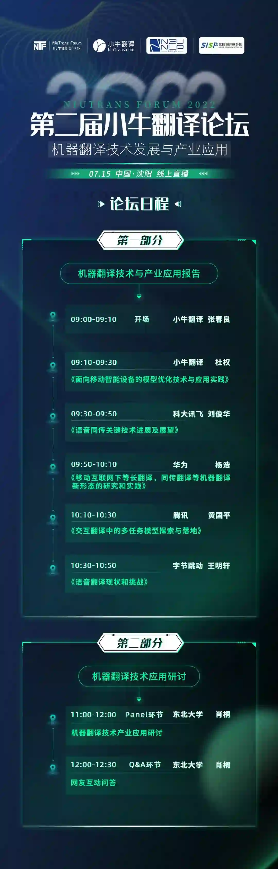 小牛翻译团队携手东北大学自然语言处理实验室,决定在每年 7 月 15 日举办“小牛翻译论坛”,邀请国内外相关行业专家学者,围绕“
