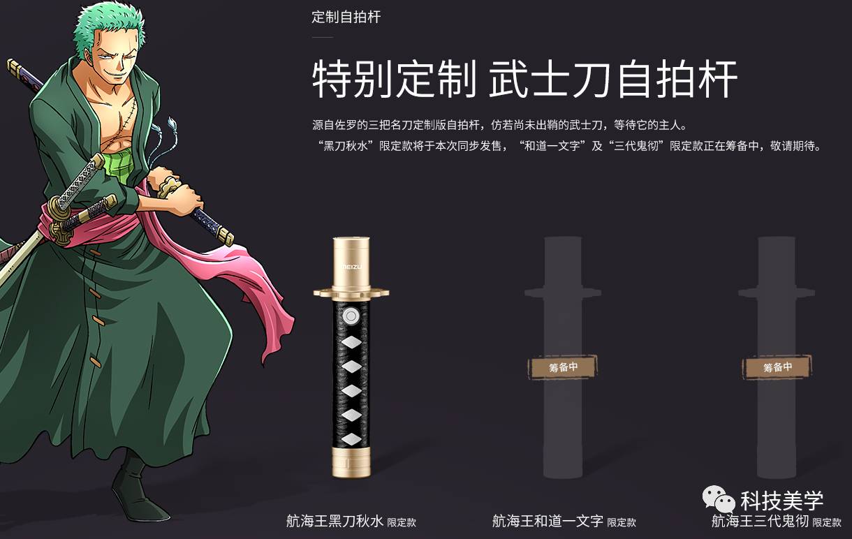 除了这些,这次的周边还有一个自拍杆。自拍杆是按照索隆的刀制作的,看官网的意思,除了索隆的这把刀还会有两个其他的版本。