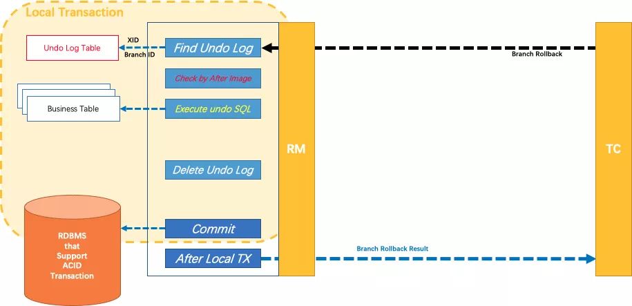 引入Fescar官方对分支事务回滚原理介绍图作为结尾: