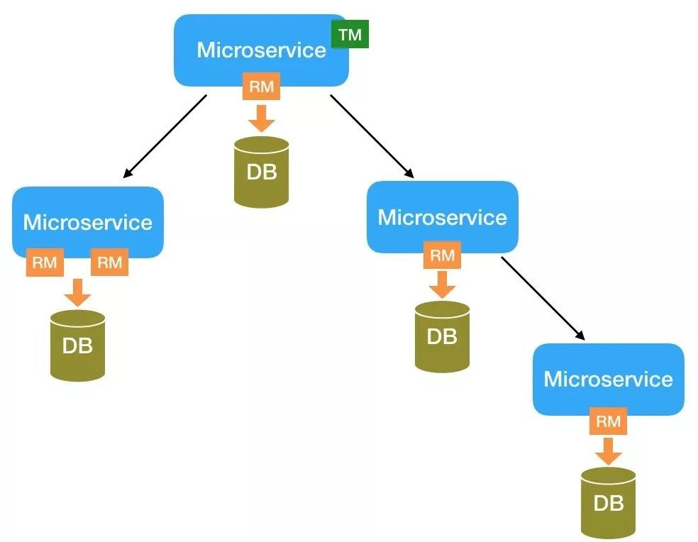 TM(Transaction Manager):全局事务管理器,控制全局事务边界,负责全局事务开启、全局提交、全局回滚。