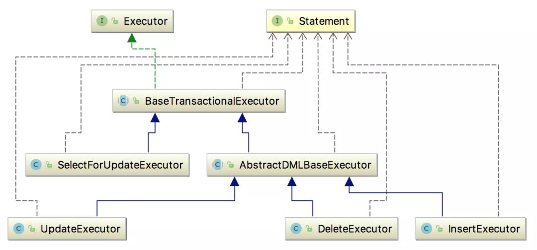 再来看一下关键的INSERT、UPDATE、DELETE、SELECT..FOR UPDATE这四种类型的sql如何执行的,先看一下具体类图结构: