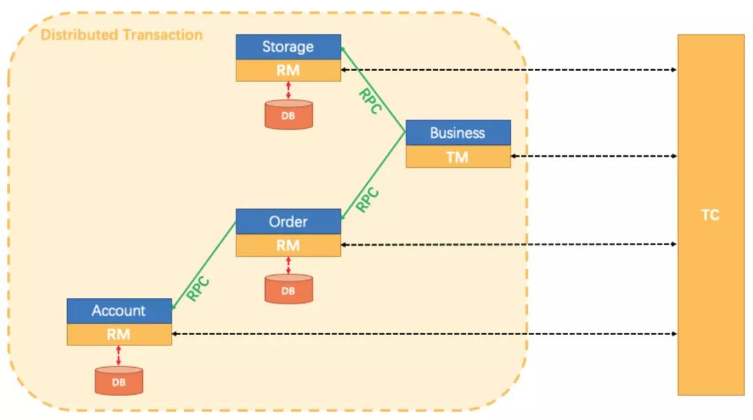 TC(Transaction Coordinator):事务协调器,维护全局事务的运行状态,负责协调并驱动全局事务的提交或回滚。