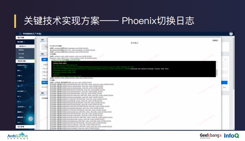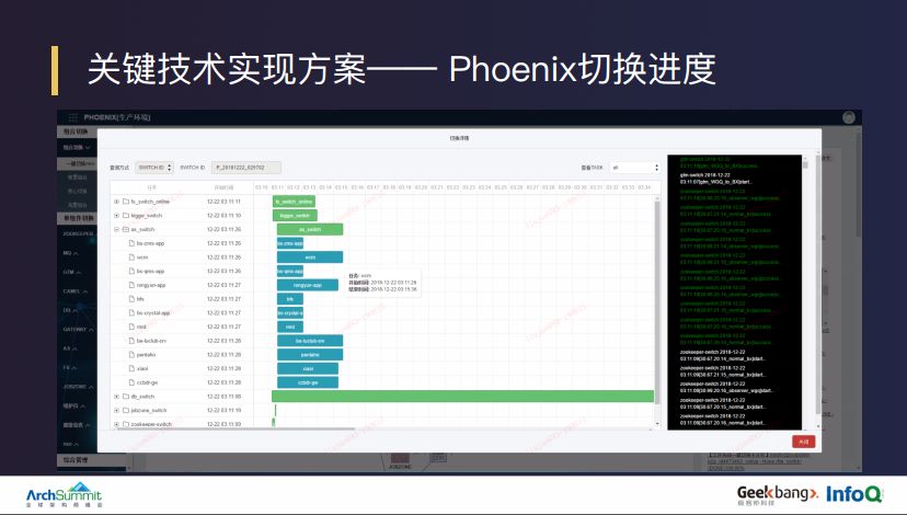 上图是切换进度页面,主要是给相对应的切换资源属组使用的,在切换过程中,各个切换的属组观察这个页面能够获取到核心组件的整体切换状态以及组件切换的里程碑。如果接着细化,可以迅速看到所负责组件的子分类和子任务的执行情况和执行耗时,当发现切换问题时能够第一时间发现并处理。