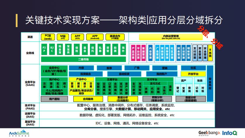 与此同时,因为每个域都有自己独立的数据库,所以我们在数据库层面做了按域拆分。拆分之前,陆金所按域是个单实例的、百TB 级的库,拆分之后,变成了 100 多个小库,最大的库也是5 TB 级别的,为后续数据库切换带来了有利条件。
