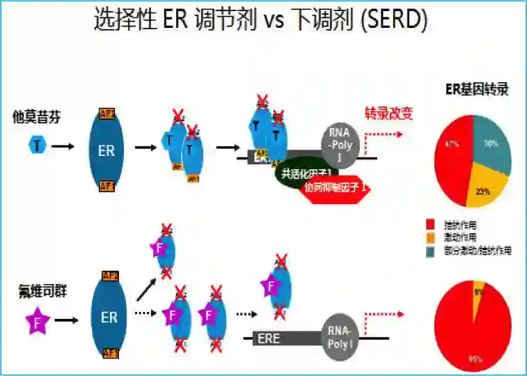 图1:氟维司群与他莫昔芬作用机制对比