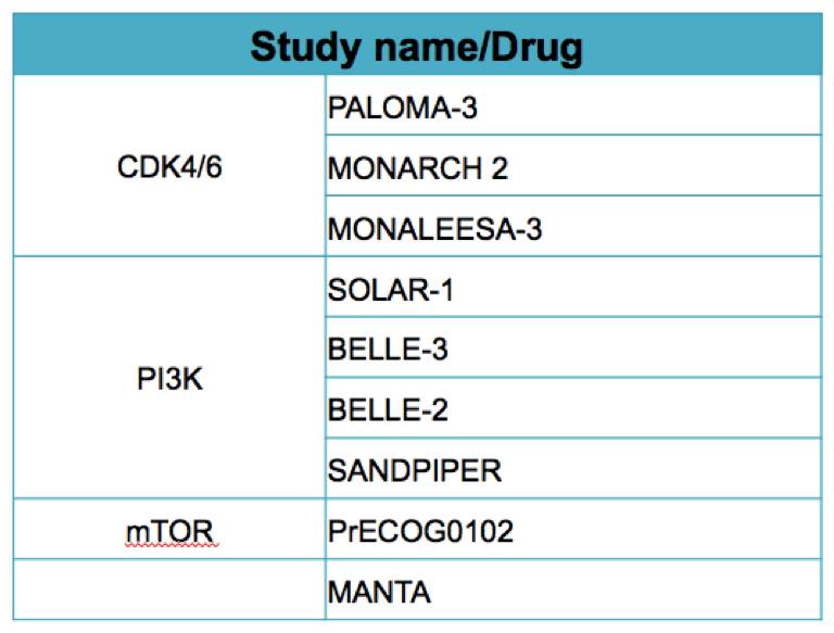 表1:目前在研的以氟维司群为基础的联合治疗临床研究汇总