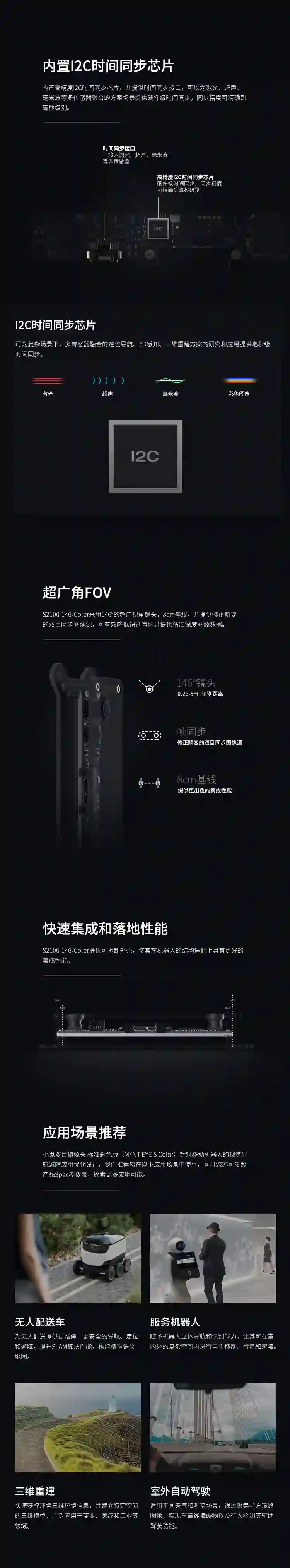本周,mynt小觅旗舰店上架了小觅双目摄像头 标准彩色版的工程版本(S2100-146/Color),工程版采用146°超广视角镜头,并提供修正畸变的双目同步图像源,可有效降低识别盲区并提供精准深度图像数据。与此同时,标准彩色版(工程版)采用8cm基线,整体更为小巧轻量,并提供可拆卸外壳,使其在机器人的结构适配上具有更好的集成性能,从而更好地为下游企业节约人力物力,帮助产品更快落地。