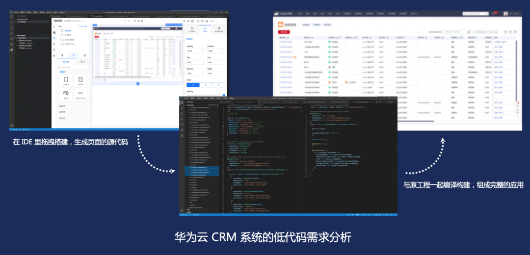 本文我们所讨论的华为云低代码平台,不同于市面上常见的低代码平台,它不仅仅可以实现简单的增删改查页面,还能支持复杂的 CRM 系统页面开发,还能生成 CRM 和 DevOps 不同技术栈的源代码,并与原 CRM 和 DevOps 系统编译集成。此外,它让不懂编程的业务人员,与专业的开发人员一起协同工作,每个人负责各自擅长的部分,使得低代码平台能够适应更多的业务场景,覆盖更多的行业领域,进一步拓展了低代码开发平台的边界。
