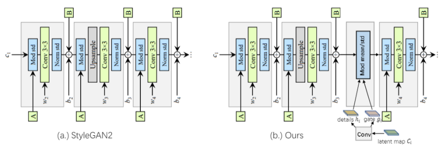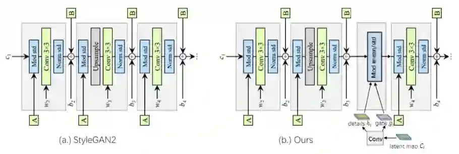 这两部分隐编码在生成器中通过参照融合层(consultation fusion)整合,共同用于图像生成。参照融合层参照下图:
