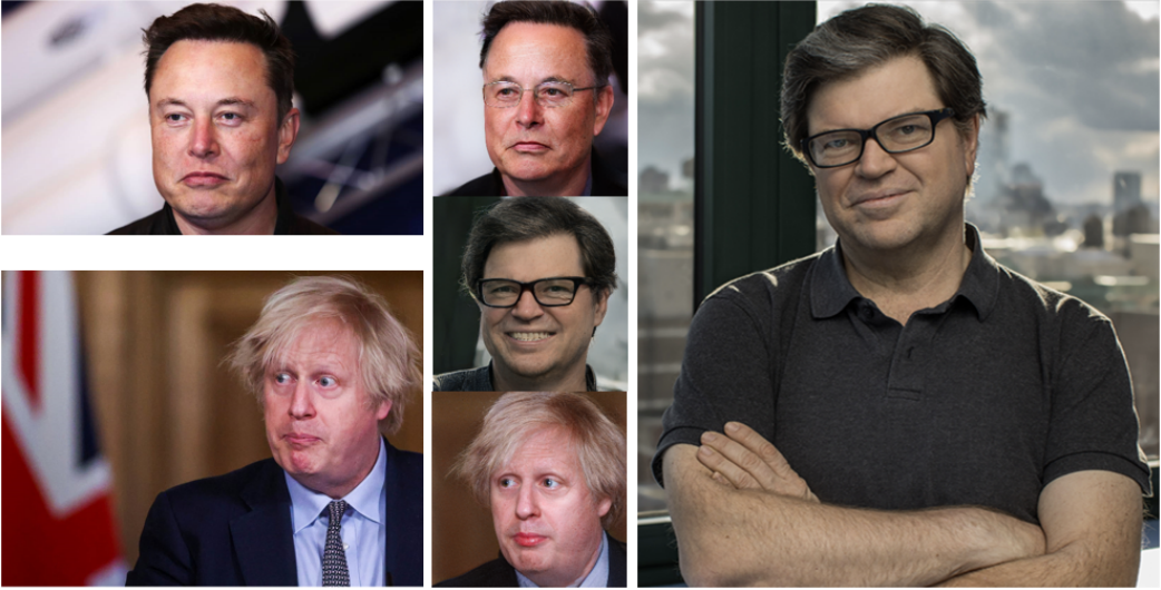 再从网络上找几张大家熟悉的名人照片试试,十年后的马斯克,假笑男孩Lecun,还有… … 涂了口红的约翰逊?