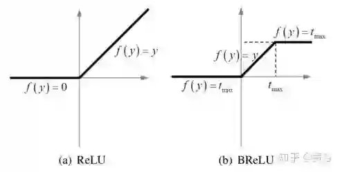 4) 非线性回归:非线性激活函数的标准选择包括Sigmoid和ReLU;前者容易受到梯度消失的影响,导致网络训练收敛缓慢或局部最优;为此提出了ReLU ,一种稀疏表示方法;不过,ReLU仅在值小于零时才禁止输出,这可能导致响应溢出,尤其是在最后一层;所以采用一种BReLU激活功能,如图所示;BReLU保持了双边约束(bilateral restraint)和局部线性;这样,第四层特征图定义为