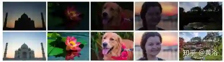 下图展示了一些增强的结果例子(上:输入,下:增强)。