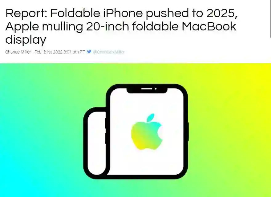 显示屏供应链咨询机构(DSCC)的 Ross Yong 今日发布最新报告,预测苹果的折叠屏 iPhone 将至少推迟到 2025 年,晚于此前估计的 2023-2024 年。