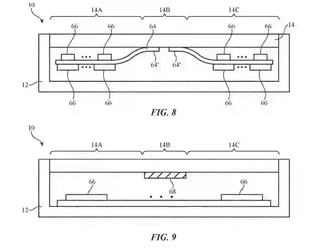 苹果对折叠屏的布局已有多年,较早公开的专利可以追溯到 2016 年 11 月。2019 年 2 月公布的一项专利显示,苹果设计了一个用于折叠屏手机的加热系统,防止手机在低温弯曲时遭到损坏。