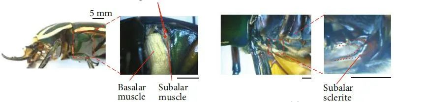 最近,南洋理工大学和德国弗莱堡大学在《Cyborg and Bionic Systems》期刊中发表了他们的最新研究,证明了甲壳虫的「翼下肌肉」对于飞行时的俯仰和偏航、翅膀的阻力与升力等具有关键作用,这个发现可以让机器甲壳虫的飞行具有更复杂的机动性,例如悬停、栖息和扫视!