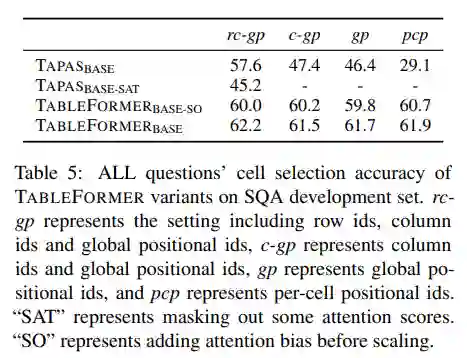 由此,TableFormer 还能够更好地编码表格结构,以及对齐表格和相应的文本描述(例如自动问答中的问题)。