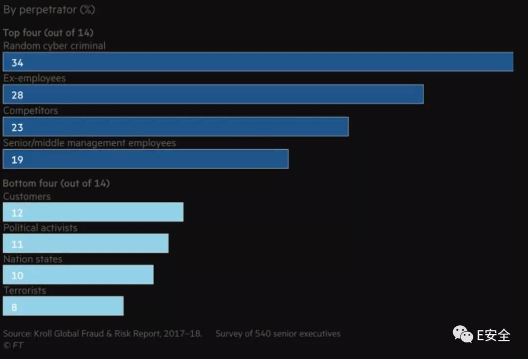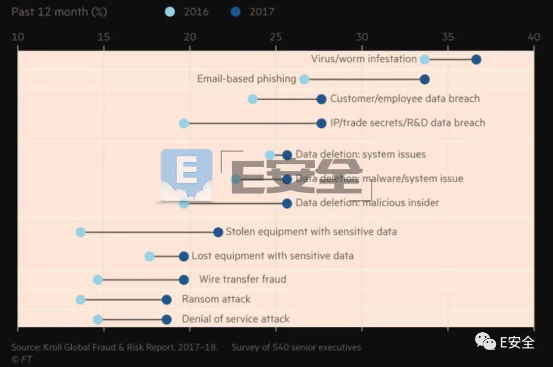除了国家政府机构,企业和公司同样需要关注网络安全问题。风险咨询公司Kroll 在2018年1月发布的调查报告中指出,网络攻击已经跃升成为企业面临的首要威胁。