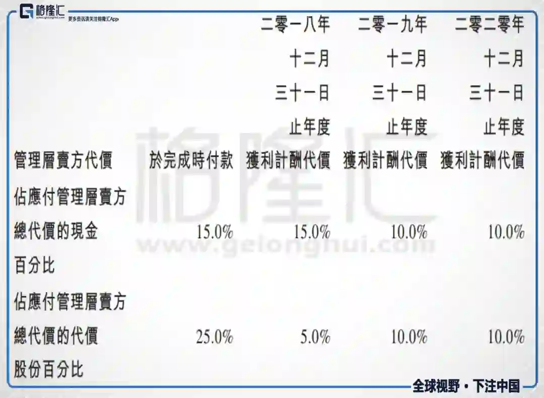 阅文集团还设立了分期支付的控制账户以保证公司与管理层利益的长期一致关系,中间如果管理层离职,自然也是拿不到控制账户中的权益。