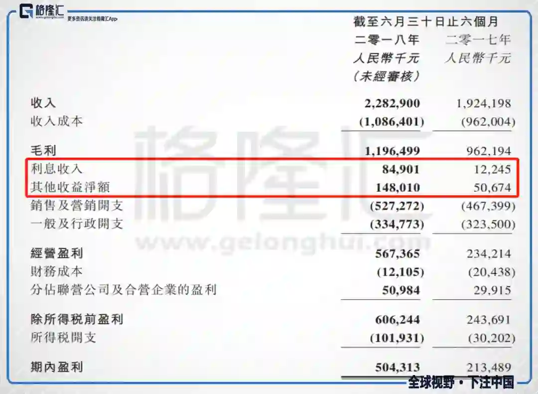 截至2018年6月底,公司毛利率由去年同期的50%增长至52.4%,经营利润率由去年同期的12.2%增长至24.9%,纯利率由去年同期的11.1%增长至22.1%。