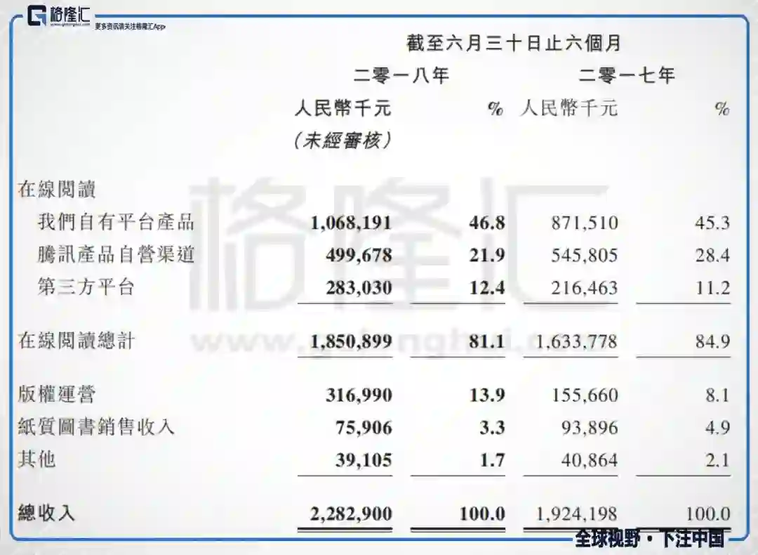 来自版权运营的收入同比大幅增长103.6%至截至上半年的3.17亿元。该增长大部分来自授权改编电视剧及网络剧、动画、游戏、电影以及漫画的版权授权收入增加