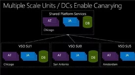 ⼀开始,Visual Studio Online 只有使⽤芝加哥数据中心的⼀个扩展单元(Scale Unit)提供服务。