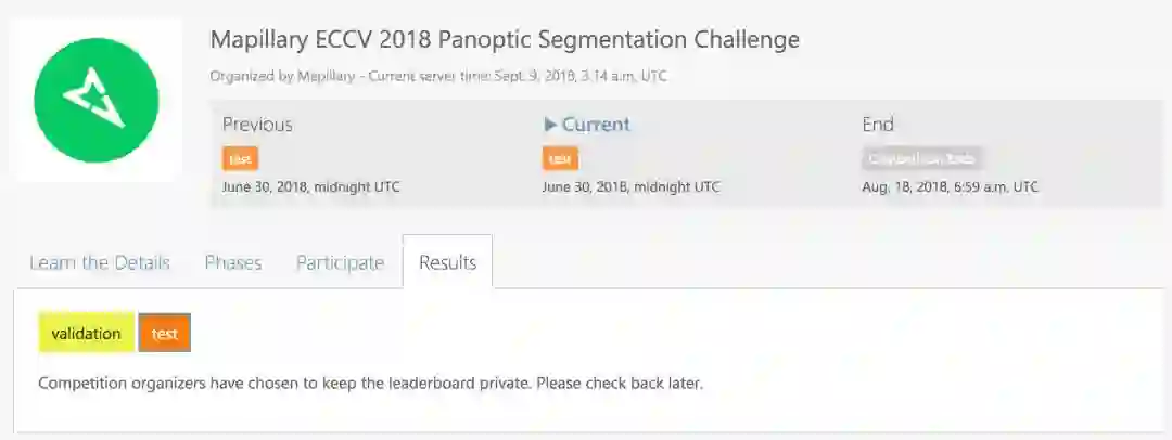因 Mapillary 竞赛组织方选择对以下两个比赛的结果保密,因此具体得分信息我们看不到。