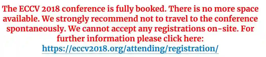 当地时间 9 月 8 日,两年一度的欧洲计算机视觉顶级学术会议 ECCV 2018 在德国慕尼黑拉开帷幕。作为计算机视觉领域的三大顶会之一,ECCV 2018 受到了极大的关注,火热异常。如今大会官网还挂着一份醒目的通知:大会已满额,没地方了。