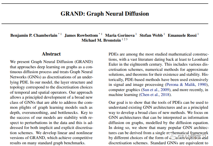 作者:Benjamin P. Chamberlain, James Rowbottom, Maria Gorinova, Stefan Webb, Emanuele Rossi and Michael M. Bronstein