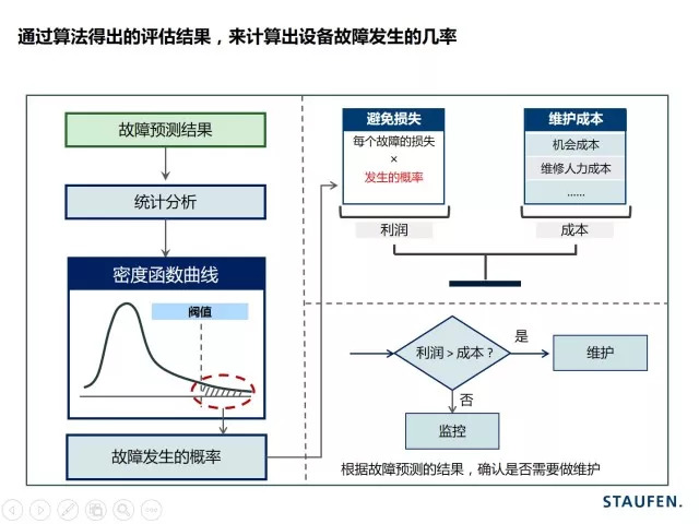 为了保持竞争力,企业正尝试利用多渠道收集的工业大数据,来提高设备的性能。一个重要方法就是分析这些数据,利用历史模式来预测未来的结果。目前最流行的一种方法被称为预测性维护,即预测设备在未来可能会发生的故障,从而可以在故障发生前就采取维护行为。这种方法可以检测出高风险状态的设备,从而更高效的部署有限的后勤维护资源。