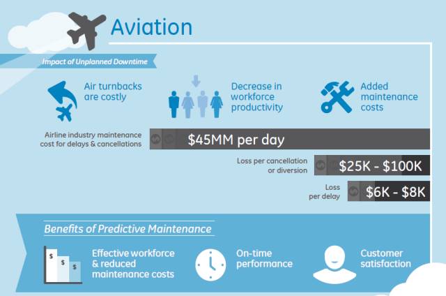 大量来自于发动机和其他一些关键部件的监控数据,使得预测性维修具备了可行性。越来越多的数据的收集和分析工具正在被开发或者投入运用。大数据在航空维修业的应用仍处于初始阶段,为了有效地处理这些来自飞机的数据,还要有思维及工作方式的转变。
