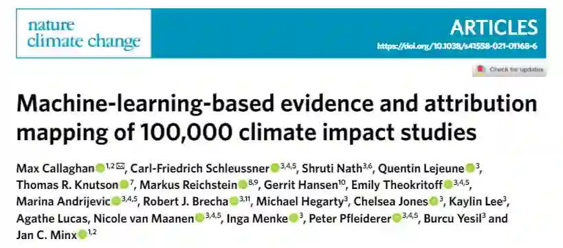 很自然地,研究人员想到了利用Bert 模型对观测气候影响的论文进行识别和分类。最近,由德国柏林的全球公域和气候变化研究所的研究人员领头,共计19位作者参与的一项气候研究发表在了Nature 子刊上。